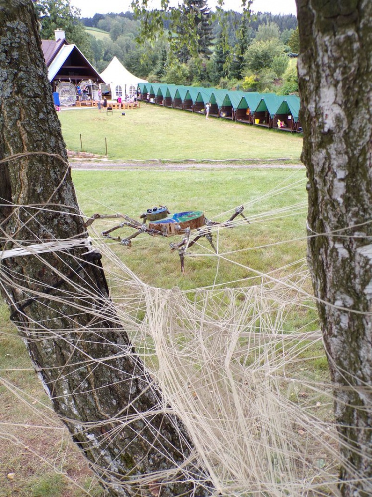 Věděli jste, že pavoučí vlákna jsou opravdu zajímavý materiál s obrovským potenciálem? Mají tvarovou paměť, vydrží teploty v rozmezí -40 až 200 stupňů Celsia, v tahu jsou pevnější než ocel a snesou protažení až o 40%!!! Naši výtvarníci vědí o pavoucích i řadu dalších věcí… a tvorbu pavoučí sítě si i sami vyzkoušeli : )