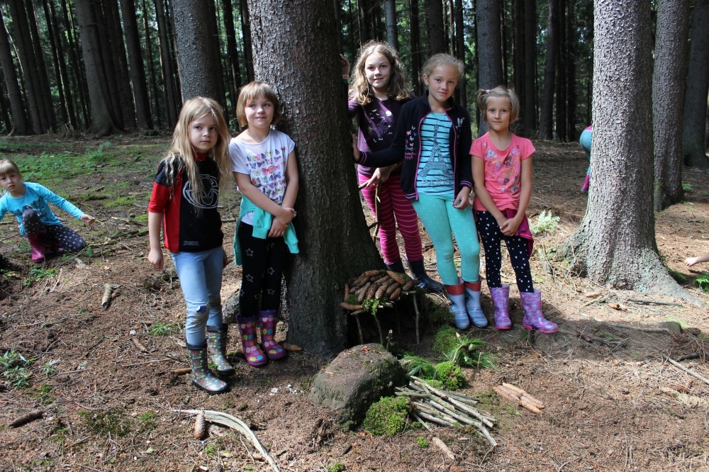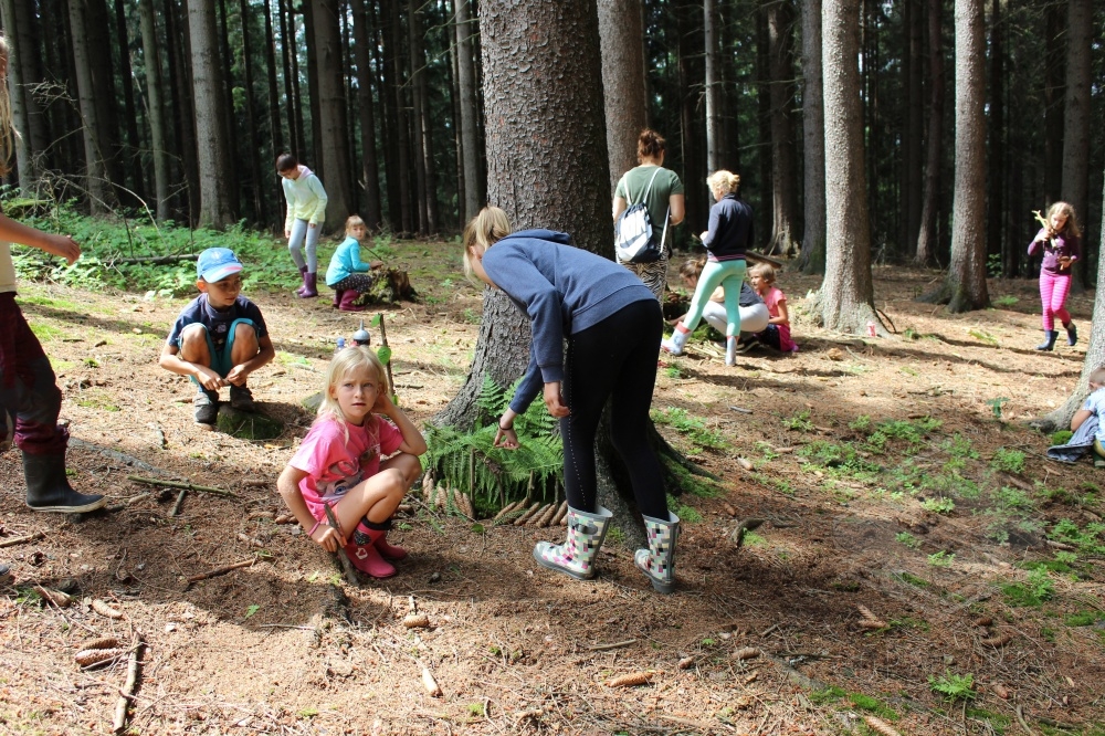 …co se stane, když výtvarná dílna vyrazí do lesa? Postaví domečky pro lesní skřítky a najde tři košíky hub : )