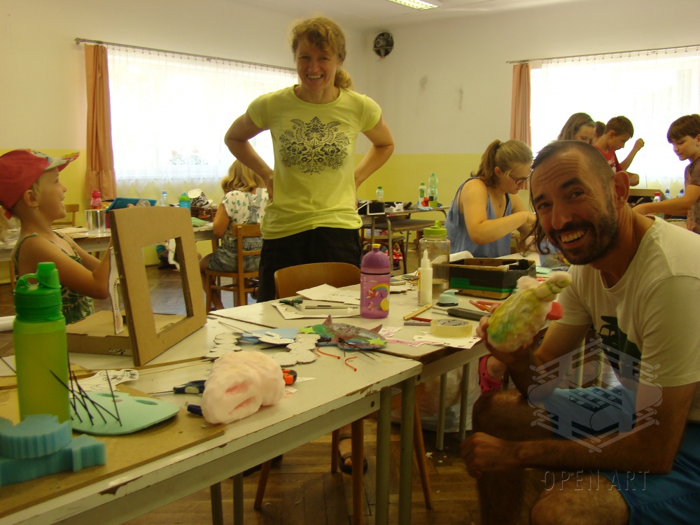 Už od neděle účastníci divadelně-výtvarné dílny Jirky Jelínka intenzivně tvoří a za asistence scénografky Báry Čechové se připravují na závěrečné vystoupení, které se uskuteční v sobotu ve 14.00 v areálu letních dílen v Roškopově! Přijďte se podívat, jste srdečně zváni : )
