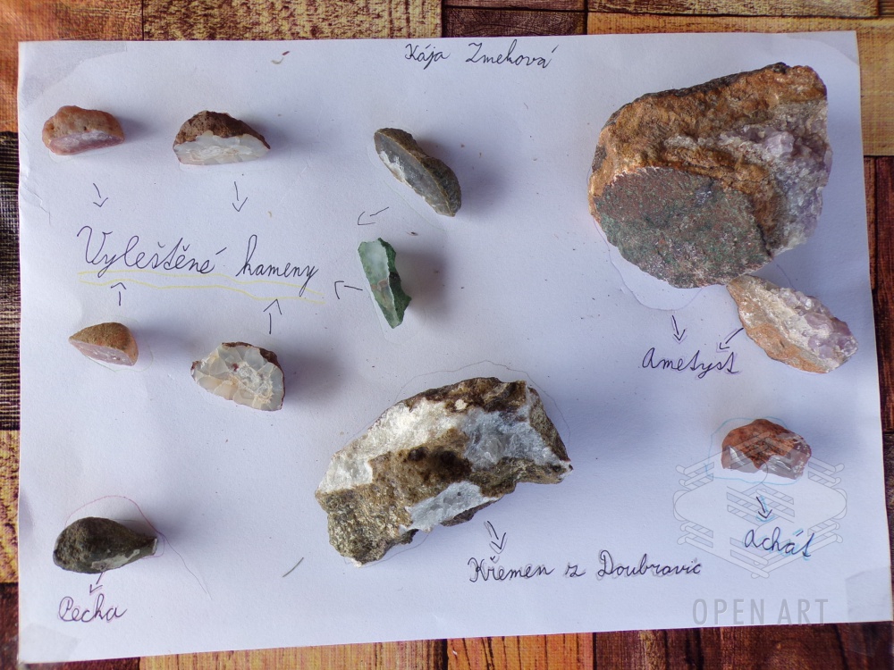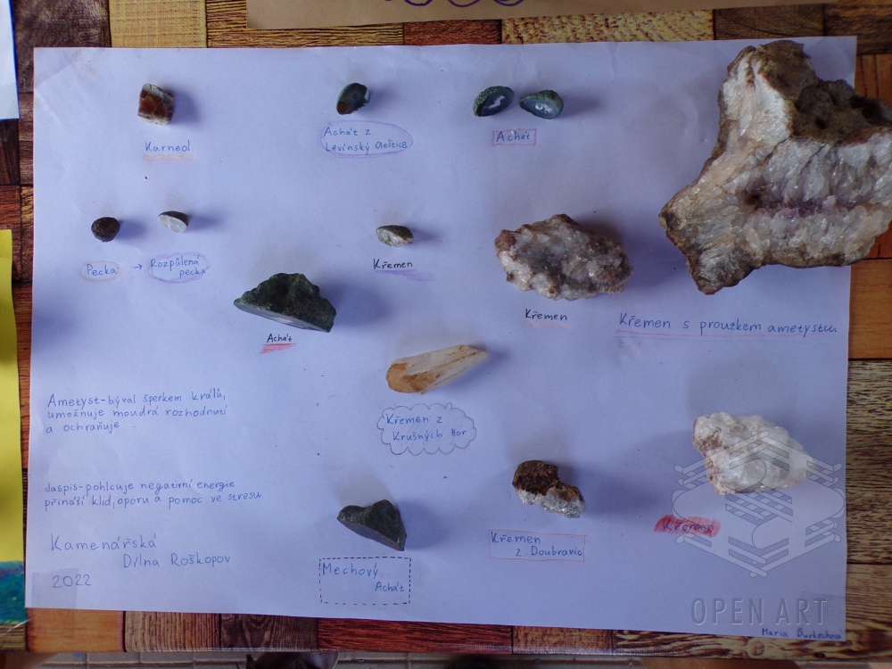 Kamenářská dílna Roškopov 2022 je u konce… Po týdnu sběru minerálů byla zakončena malou výstavou vlastnoručně nalezených, nařezaných, vybroušených a vyleštěných kamenů : )