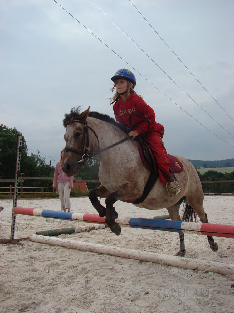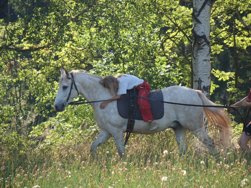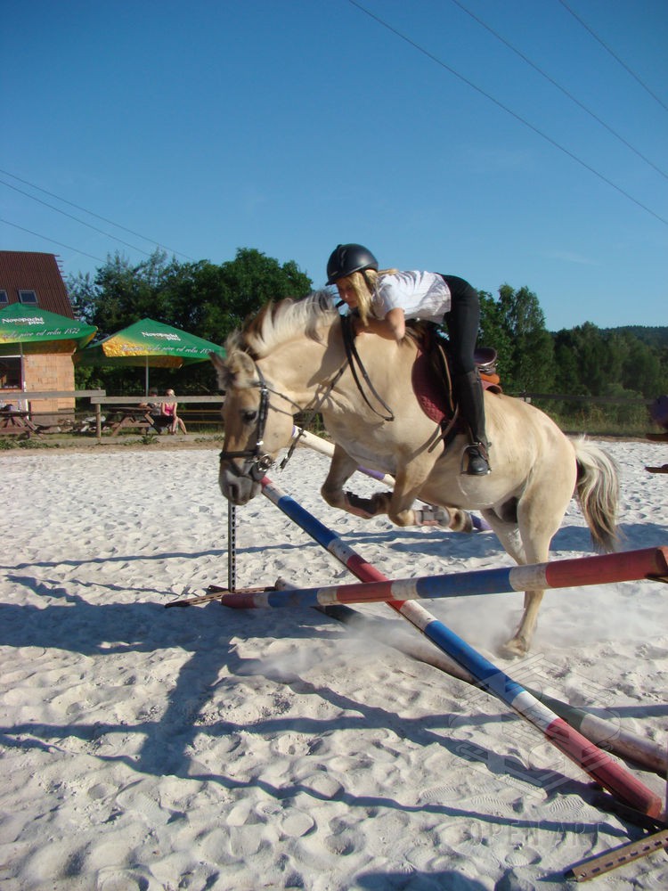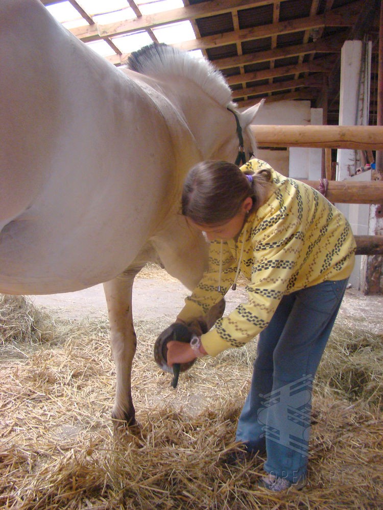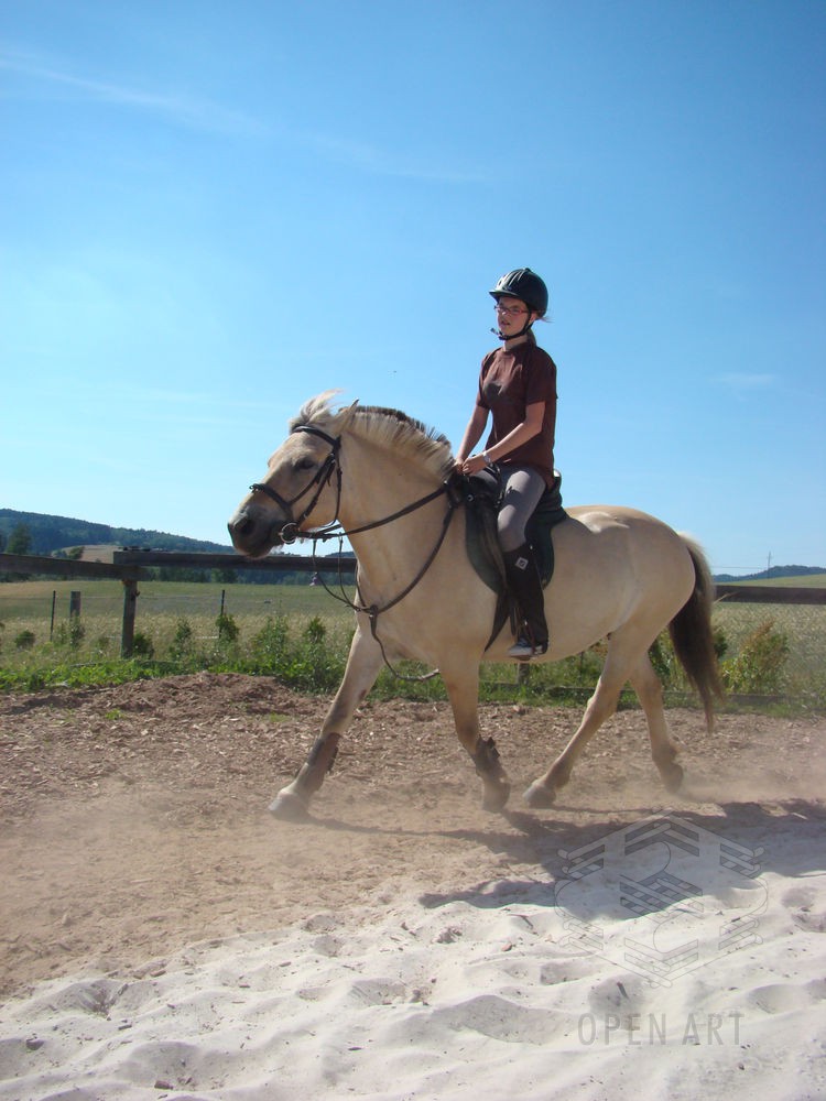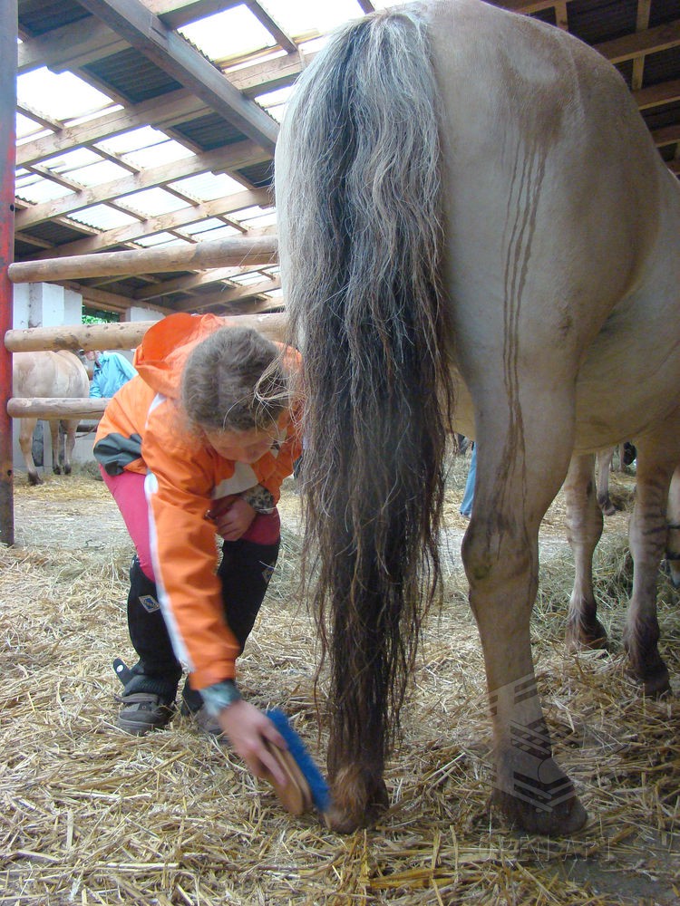 Týden s koňmi o koních. Pro začátečníky od 10 let. Jezdecký výcvik dětí bude probíhat denně v areálu jezdecké farmy Stará Paka. Farma vlastní v ČR unikátní stádo 20 malých horských koní plemene Fjord, dovezených z Holandska. Koně jsou menšího vzrůstu (do 155 cm kohoutkové výšky), a proto jsou se svojí klidnou a milou povahou vhodné k práci s dětmi. Děti (začátečníci) se během výcviku naučí základy ježdění a ošetřování koní. V ceně je zahrnuto 10 hodin jízdy na koni.