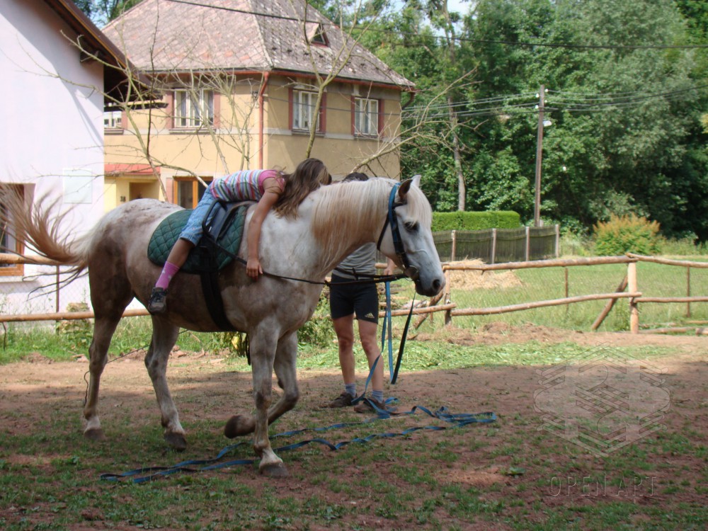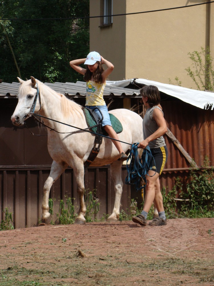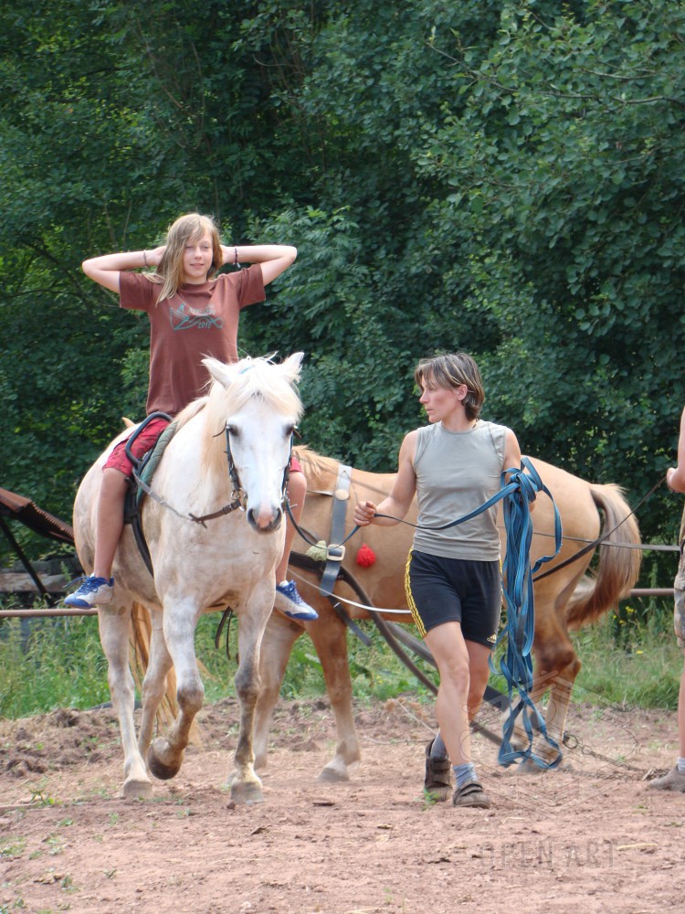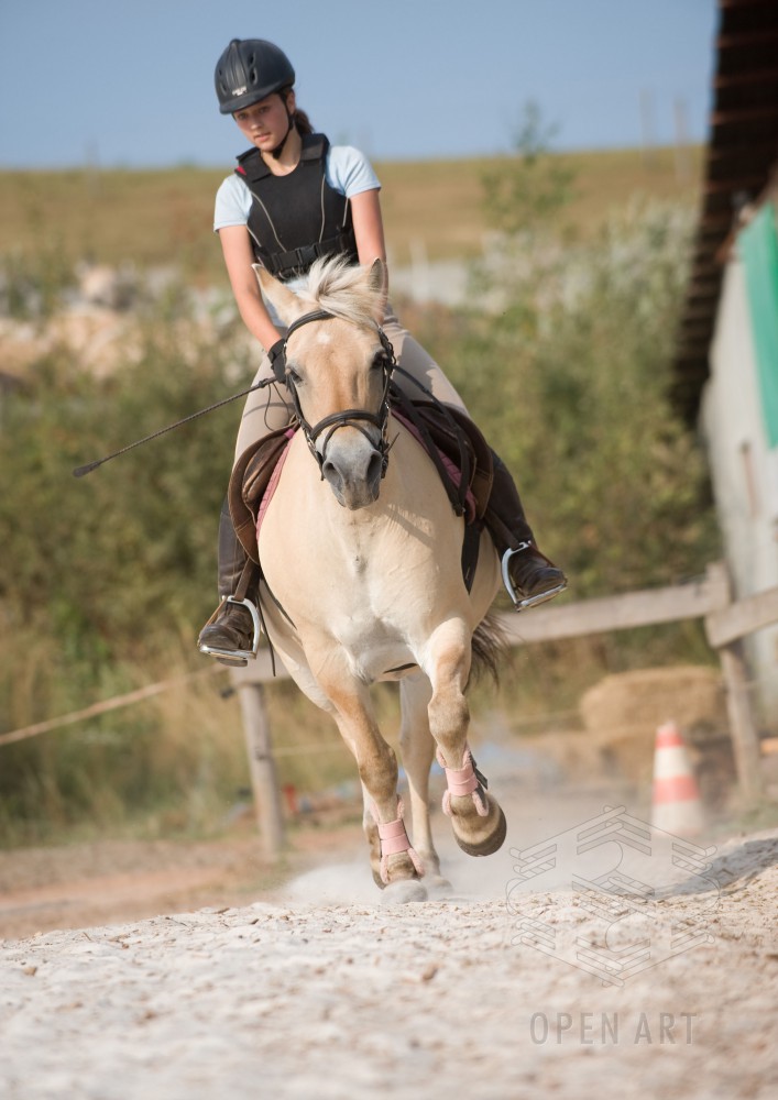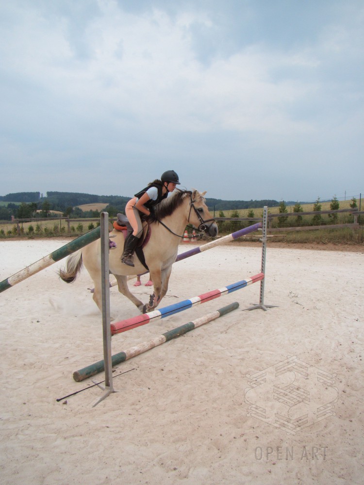 Týden s koňmi o koních. Pro začátečníky od 10/12 let. Jezdecký výcvik dětí bude probíhat denně v areálu jezdecké farmy Stará Paka. Farma vlastní v ČR unikátní stádo 20 malých horských koní plemene Fjord, dovezených z Holandska. Koně jsou menšího vzrůstu (do 155 cm kohoutkové výšky), a proto jsou se svojí klidnou a milou povahou vhodné k práci s dětmi. Děti (začátečníci) se během výcviku naučí základy ježdění a ošetřování koní. V ceně je zahrnuto 10 hodin jízdy na koni.