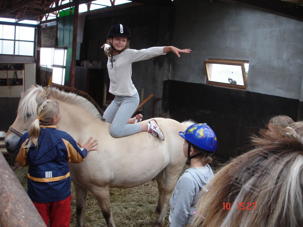 Jezdecký výcvik dětí bude probíhat denně v areálu jezdecké farmy Stará Paka. Farma vlastní v ČR unikátní stádo 20 malých horských koní plemene Fjord, dovezených z Holandska. Koně jsou menšího vzrůstu (do 155 cm kohoutkové výšky), a proto jsou se svojí klidnou a milou povahou vhodné k práci s dětmi.