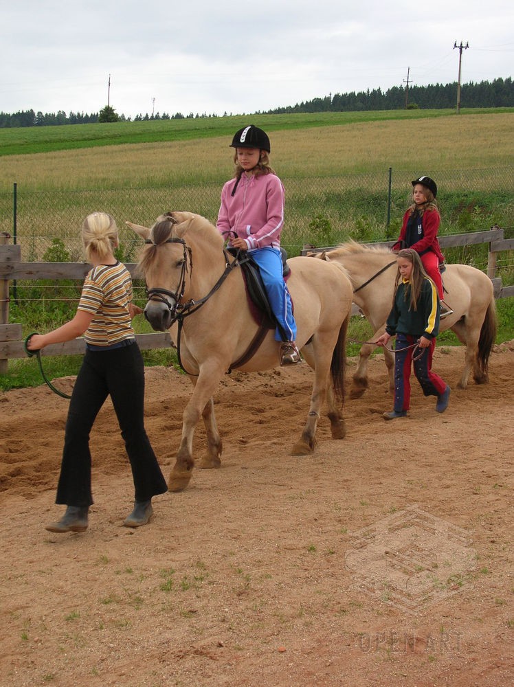 Děti (začátečníci) se během výcviku naučí základy ježdění a ošetřování, děti mírně pokročilé a jezdci mohou na koních strávit chvíle při vyjížďkách do krásného kopcovitého terénu v okolí farmy.