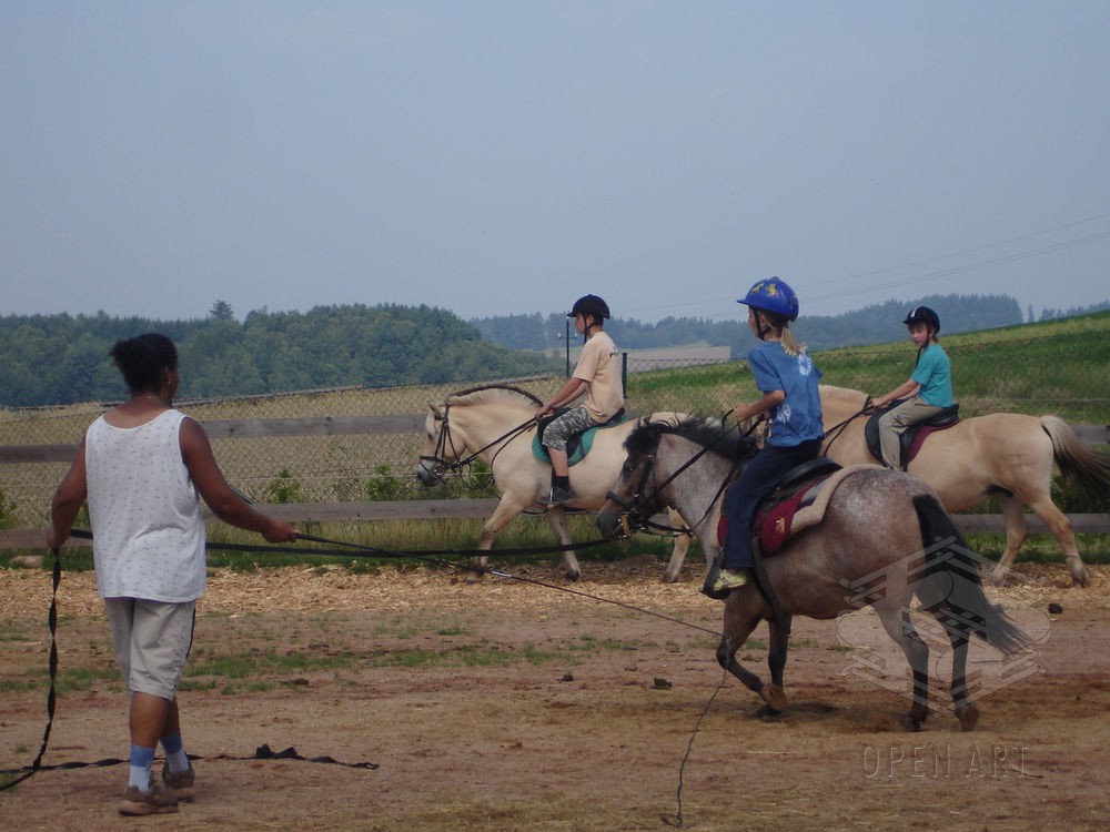 Děti (začátečníci) se během výcviku naučí základy ježdění a ošetřování, děti mírně pokročilé a jezdci mohou na koních strávit chvíle při vyjížďkách do krásného kopcovitého terénu v okolí farmy.