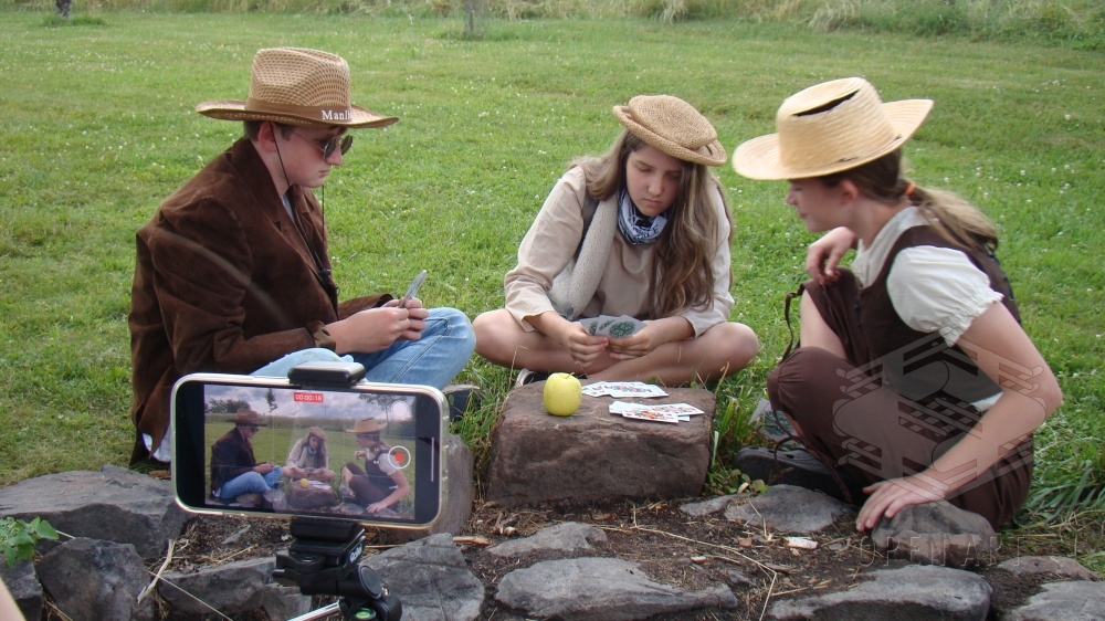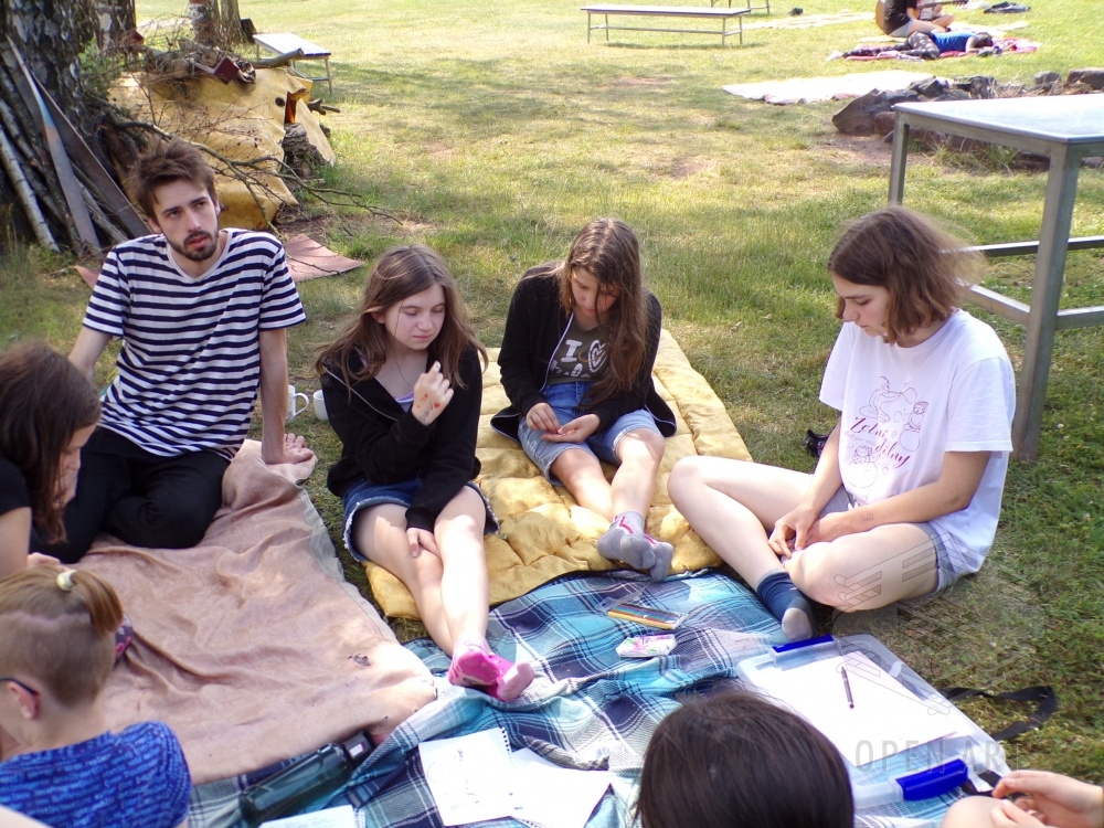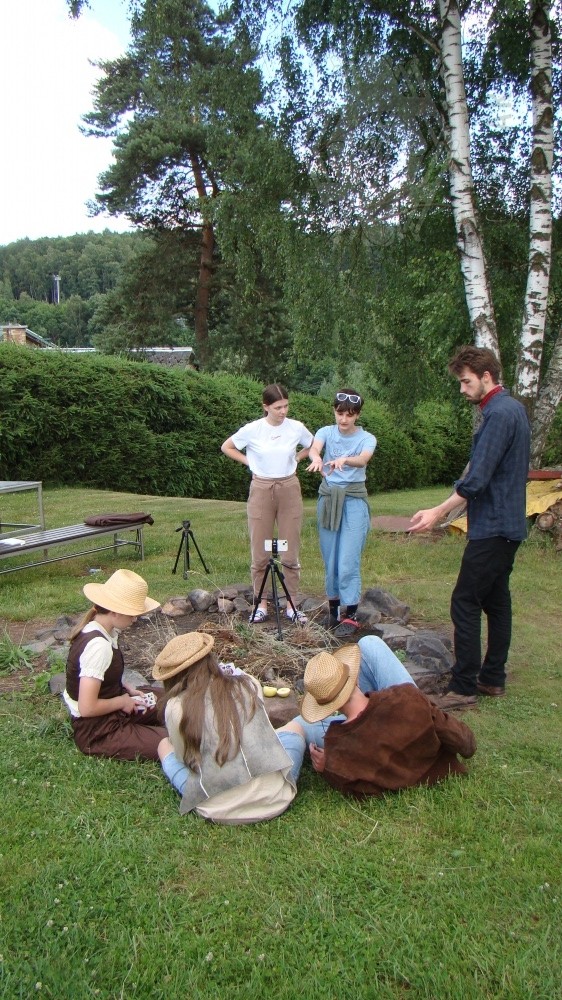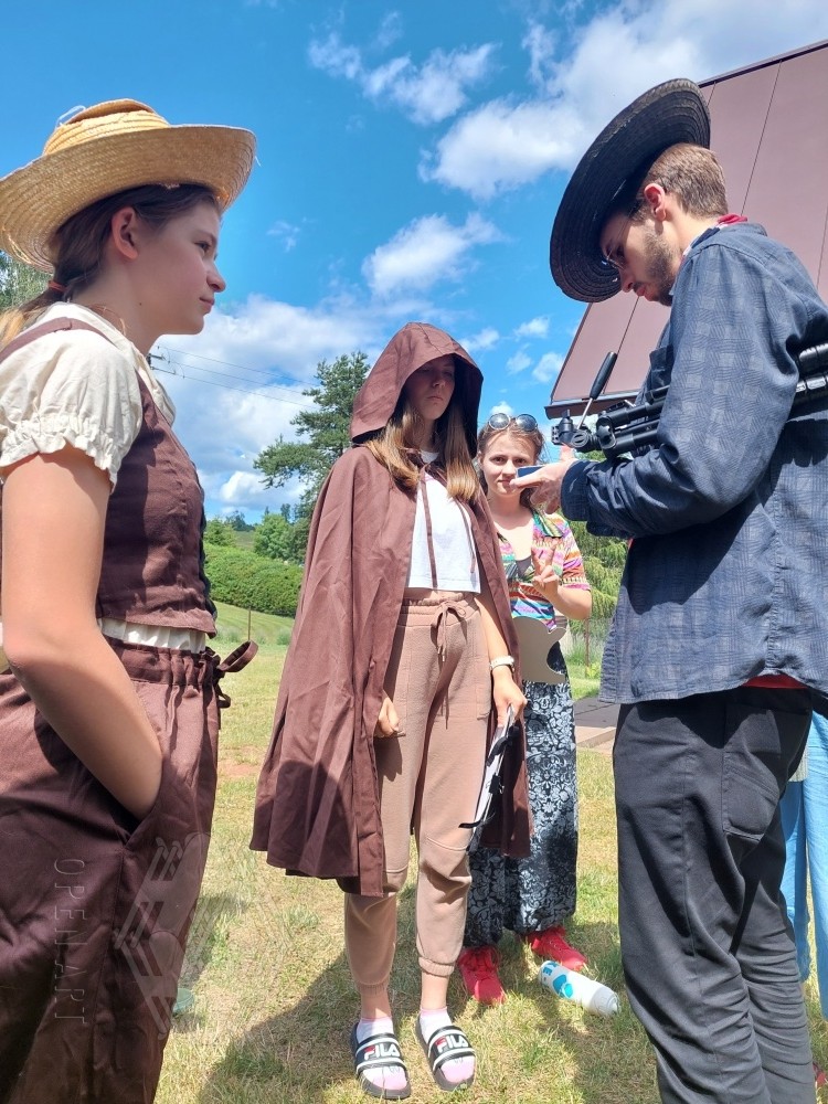 Po týdnu teoretických příprav, filmových a hereckých cvičení, psaní scénáře a výroby kostýmů a rekvizit jdeme do finále! Po celý den dnes probíhá natáčení filmu… : ) Oba natáčecí týmy se poctivě připravovaly a VY VÝsledek můžete VIdět tuto sobotu od 15.00 v novopackém kině!