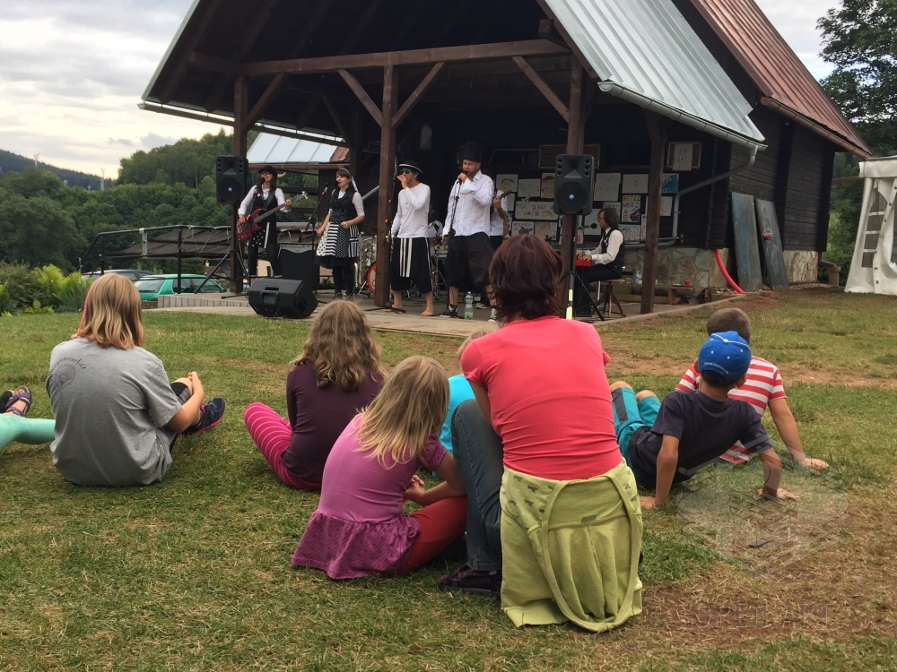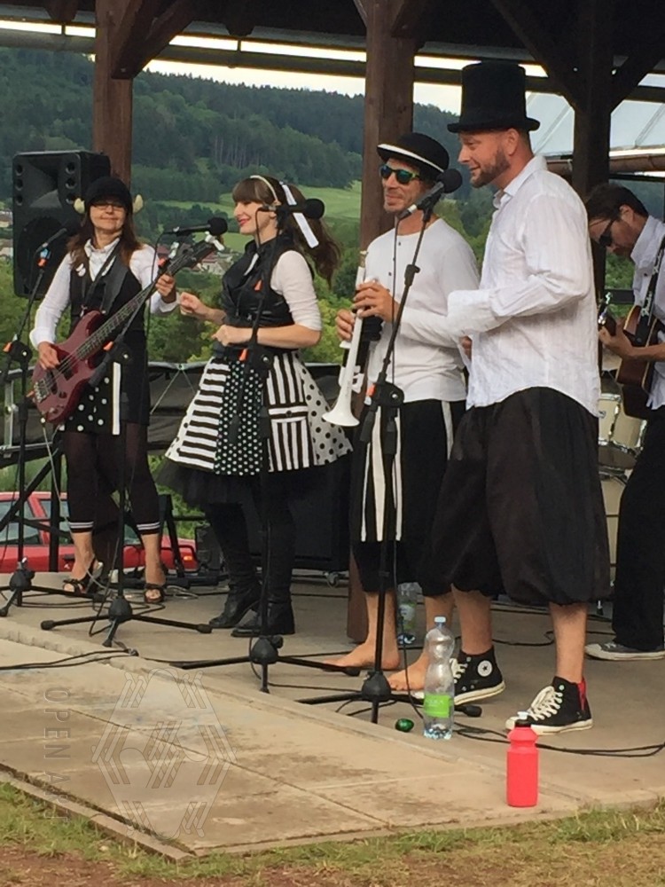 Parta „usmrkánků“ z Divadla rozmanitostí v Mostě přijela a zahrála ve středu 12.7. v areálu AVZO v Roškopově pro všechny malé i velké „smrkáče“. Kdo netančil, alespoň posmrkával do rytmu nebo tančil vsedě, protože černobílá podívaná ve stylu „denciny-denciny“ nenechala nikoho úplně v klidu!
