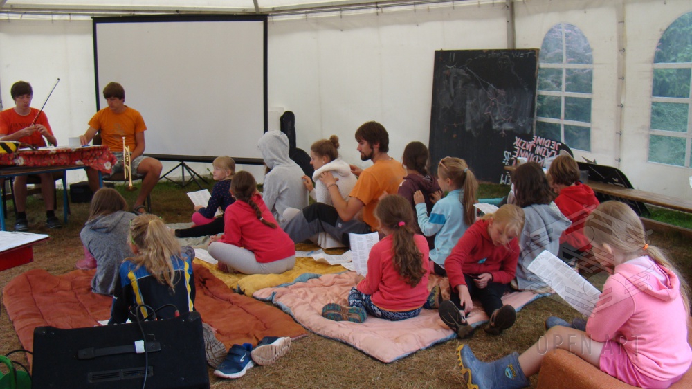 Celý týden s hudbou a písničkou strávili účastníci muzikálové dílny. Pod vedením tria zkušených pedagogů a domovníků „Tres muchachos“ děti zkouší původní roškopovský muzikál ( s vlastnoručně vyrobenými kulisami a kostými ), který můžete na vlastní uši slyšet v sobotu ve 14.00 v Roškopově!