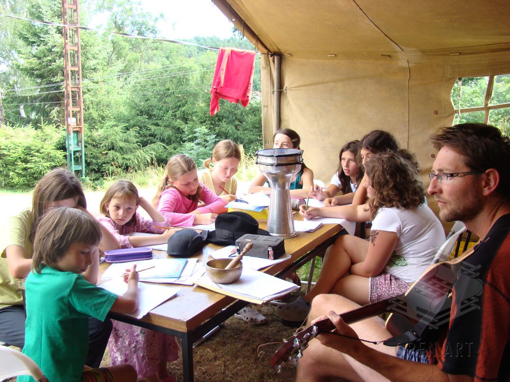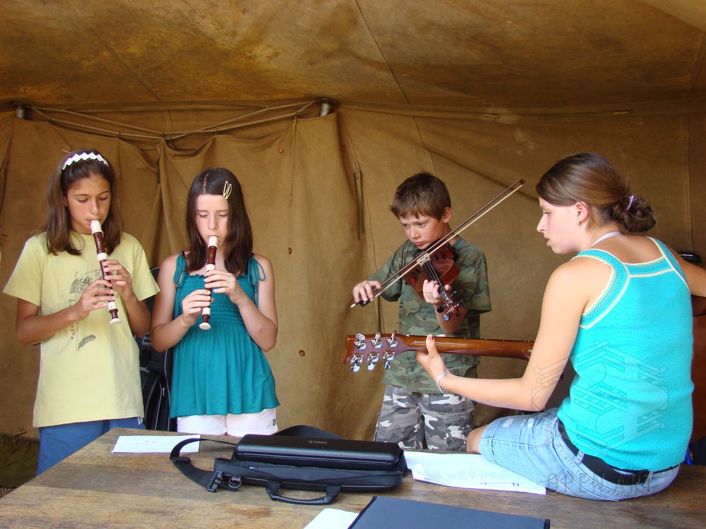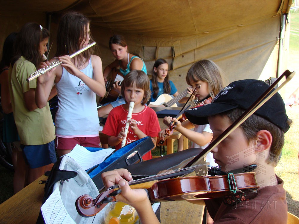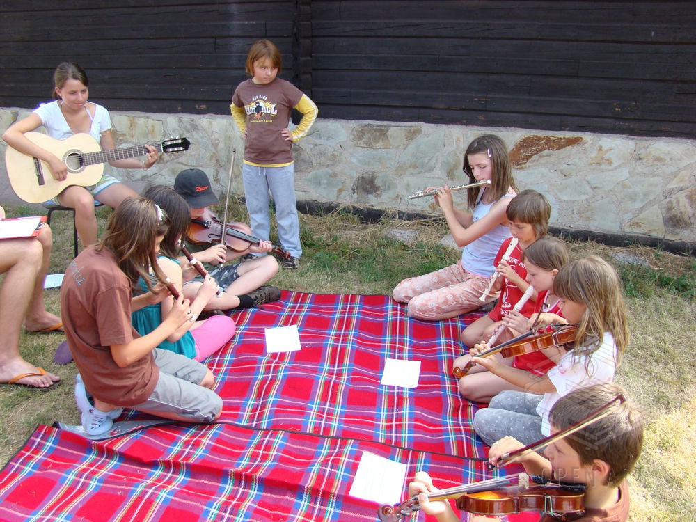 Co čeká vás? Sólový i sborový zpěv za doprovodu vlastních i cizích hudebních nástrojů, nácvik muzikálu, výroba kostýmů a kulis. Muzikálová premiéra na konci týdne.