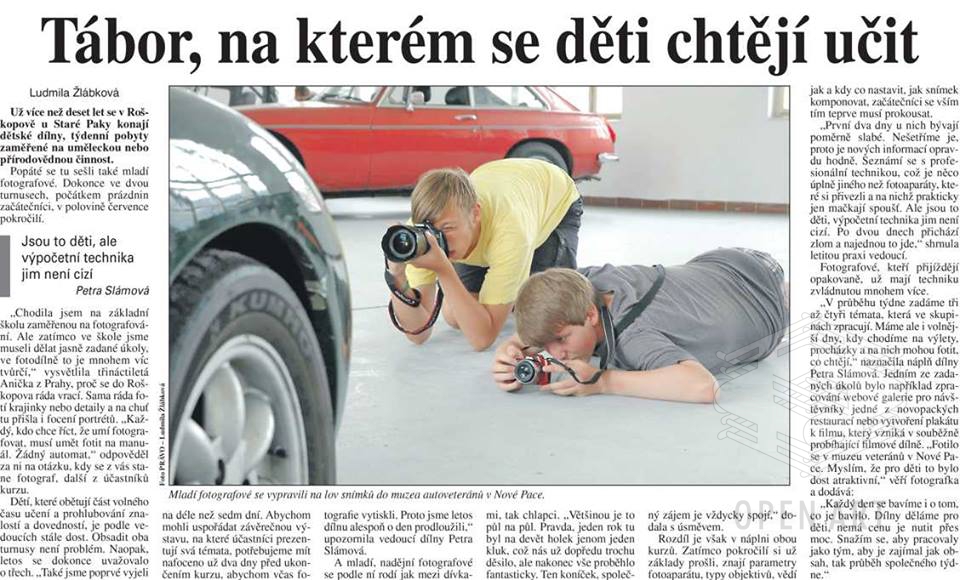 Článek o Letních dílnách Roškopov ( fotografická dílna ) v Právu : )