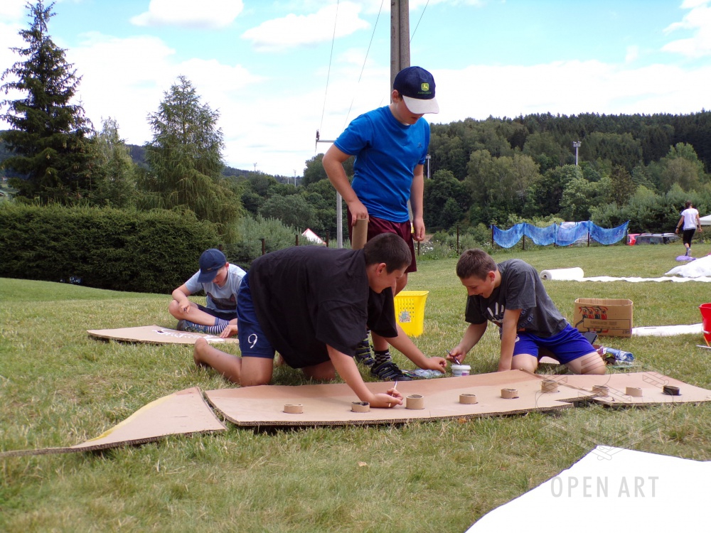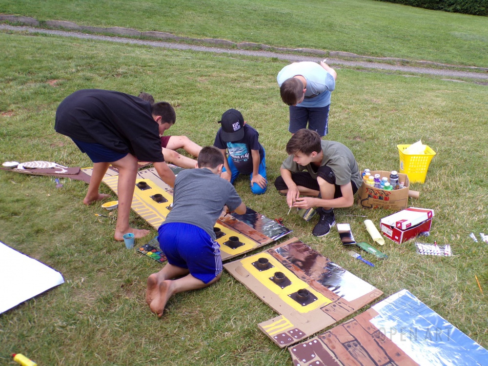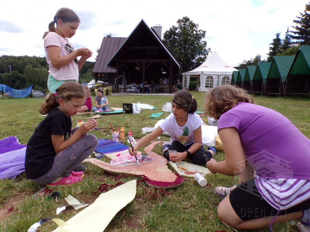 Třetí prázdninový týden bude v Roškopově ve znamení výtvarných aktivit a hudby; začala totiž výtvarná a muzikálová dílna! A protože jednou z věcí, kterou bychom děti rádi naučili, je týmová práce a spolupráce, zahájili výtvarníci svoji dílnu výrobou kulis pro muzikálové představení! Pirátská loď? Mořská panna? Pro naše malé výtvarníky žádný problém…