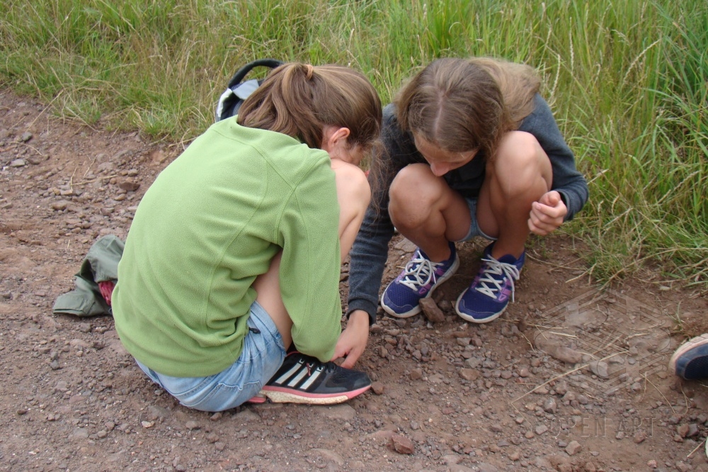 Ani druhý den účastníci kamenářské dílny nezaháleli – a odměnou jim byly české granátky a spousta achátových pecek nebo alespoň jejich částí… Rodiče, těšte se, sáčky se nám pomalu, ale jistě plní nalezenými poklady : )