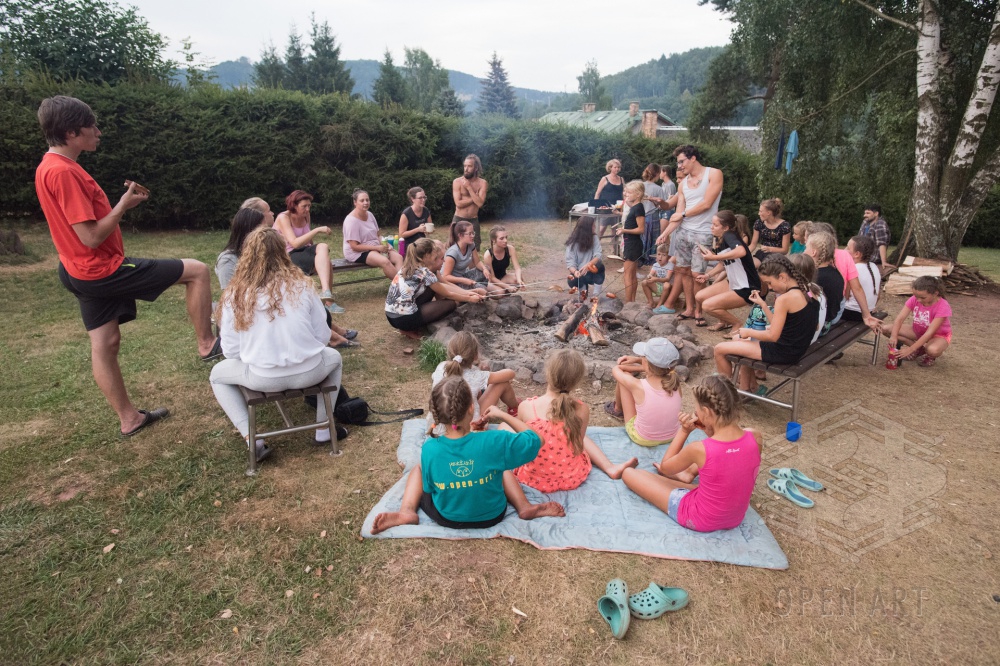 Společný čtvrteční táborák všech účastníků i s následnou bojovkou se vydařil… a teď už přípravy „foťáků“ na závěrečnou vernisáž – přijďte se podívat dnes ve 14.00!