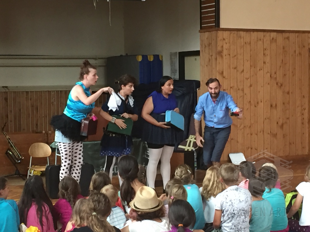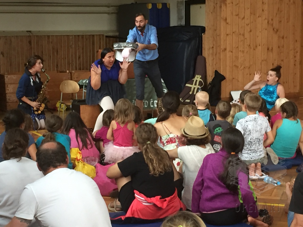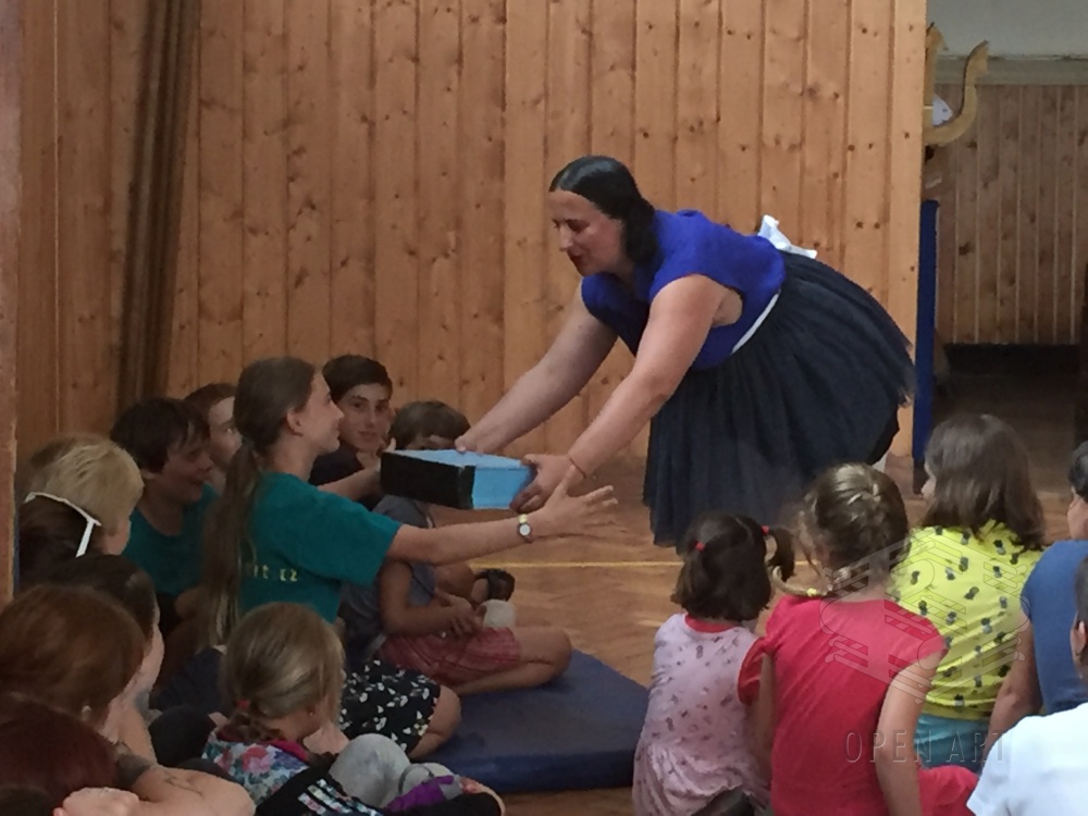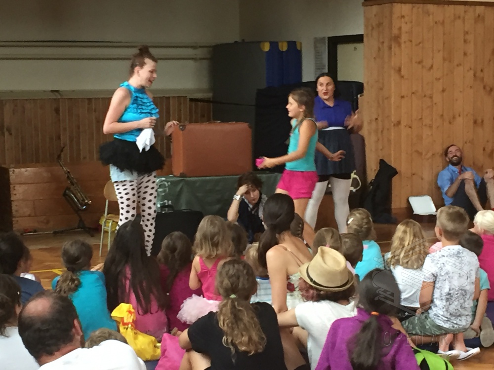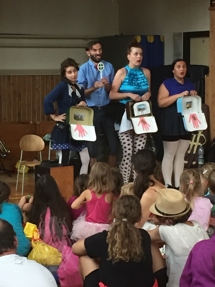 Účastníci taneční dílny i dílny animace využili poslední červencovou středu nabídky programu Staropackého divadelního července a navštívili představení Divadla Dno a Klubu Leitnerova VELKÁ VLAKOVÁ POHÁDKA. Pohádku Jiřího Jelínka o třech zakletých vlakových princeznách jsme kvůli nepřízni počasí zhlédli v tělocvičně místní školy, ale na zážitku nám to neubralo…. !