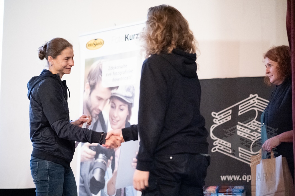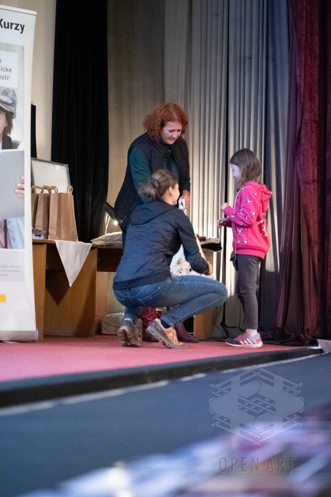 Od 13.00 následovalo slavnostní vyhlášení nejlepších snímků ve dvou věkových a čtyřech tématických kategoriích! Předsedkyně poroty, nadšená fotografka a dlouholetá odborná vedoucí fotografických dílen v Roškopově, Petra Menclová při ní spolu s ostatními členy poroty (Jana Soběslavová, Kristýna Končická, Leoš Erben, Dan Polman a Jakub Muller ) komentovala nejlépe hodnocené fotografie a důvody, které je k tomuto hodnocení přivedly.
