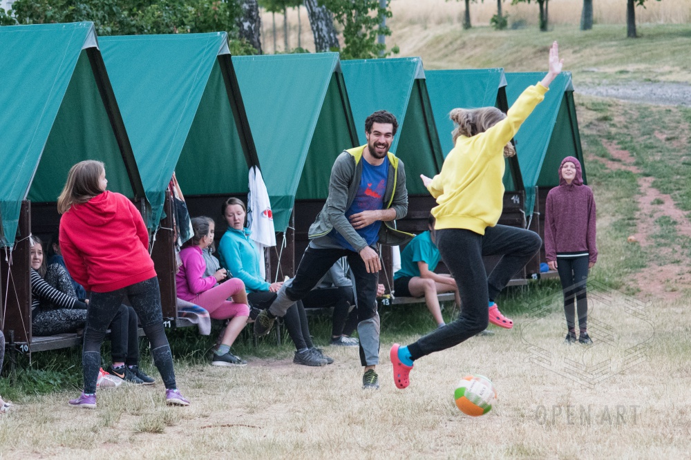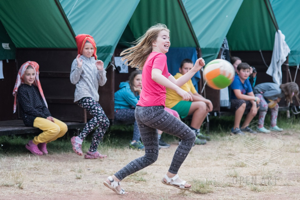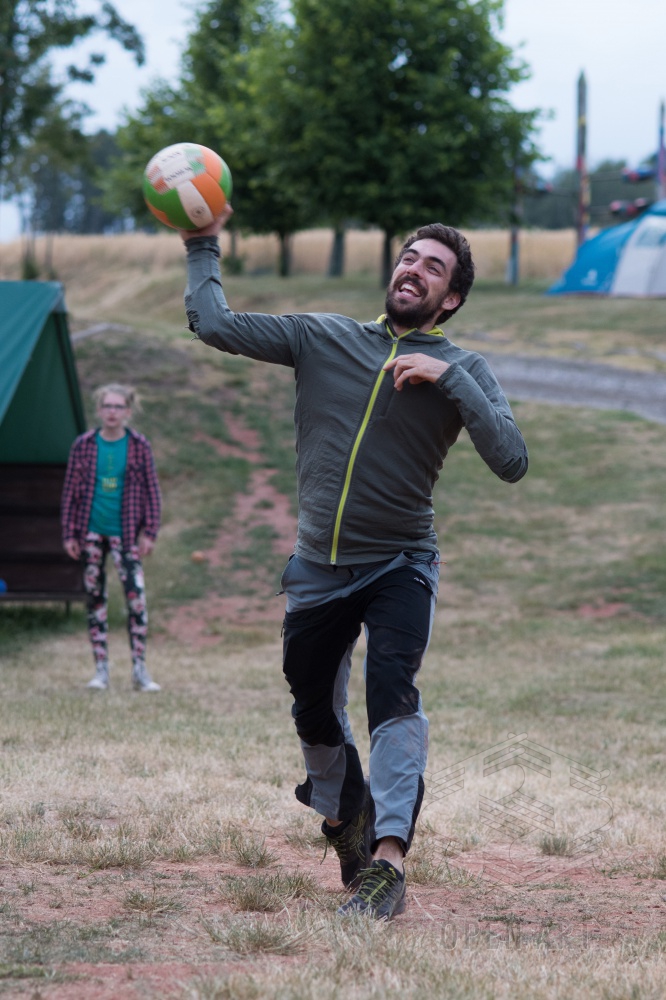 Vybíjená… Tradiční součást táborových her! A když se zapojí celý tábor i s vedoucími, je to mazec : ) Kdo má největší ránu? Kdo umí chytat „perdy“? Koho prostě nejde vybít? A kdo neumí prohrávat, tady se to naučí!