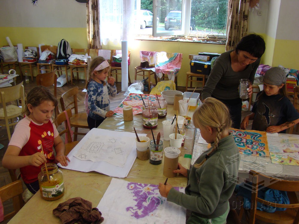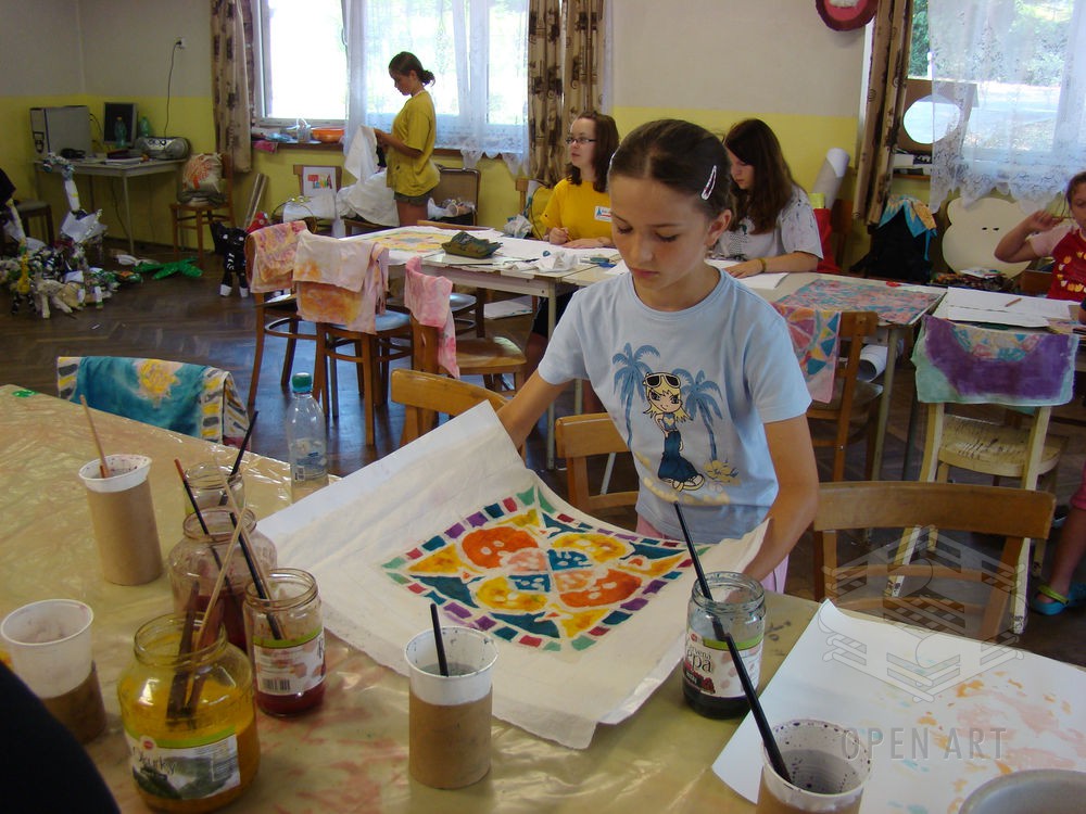 Pod vedením několika vedoucích si účastnící se děti vyzkouší své schopnosti v prostorové tvorbě, malbě, kresbě a několika specificky zaměřených výtvarných projektech.