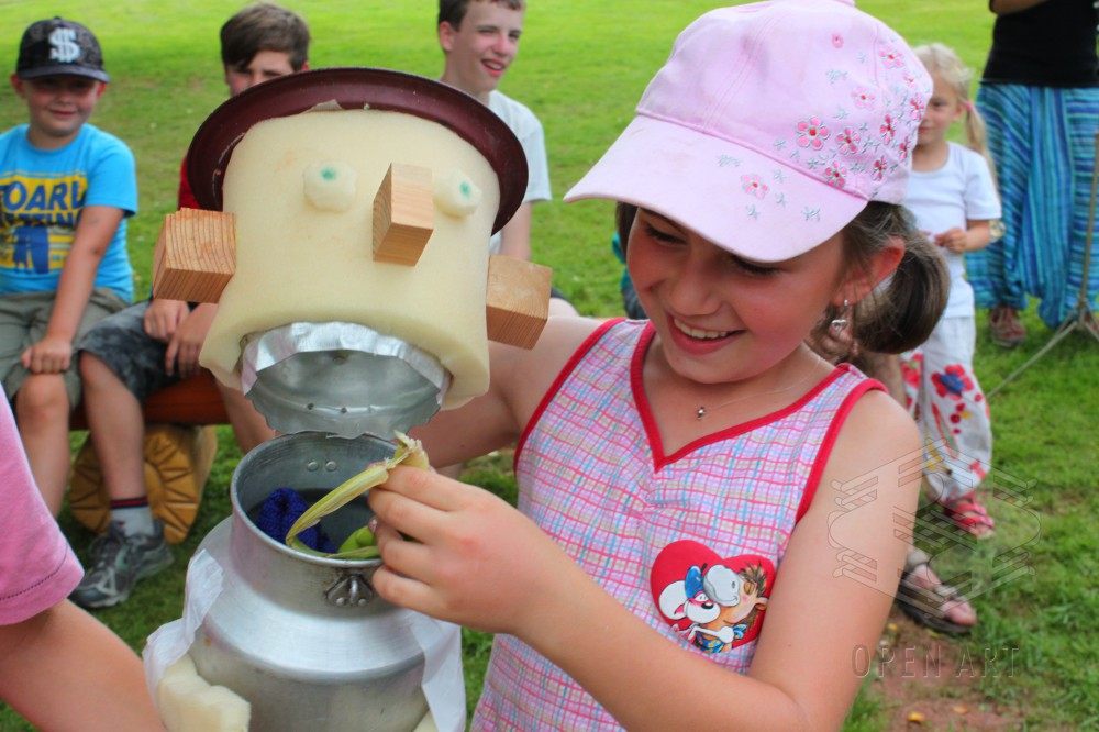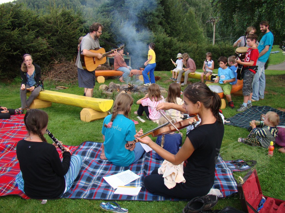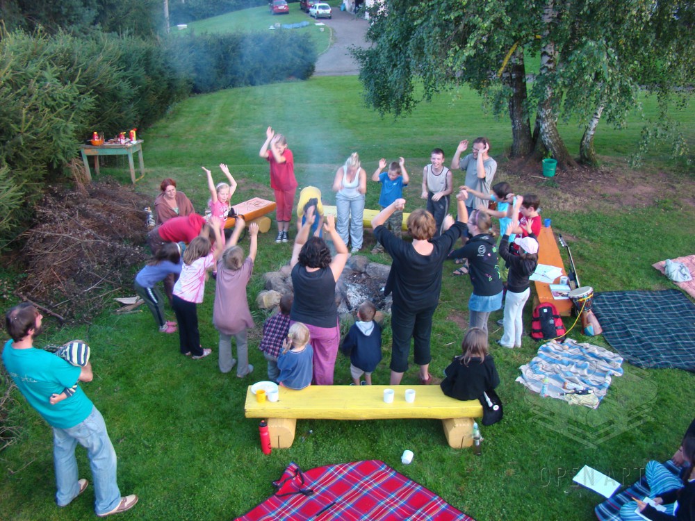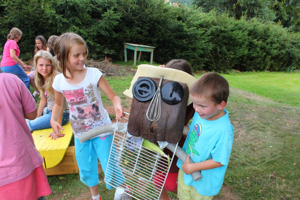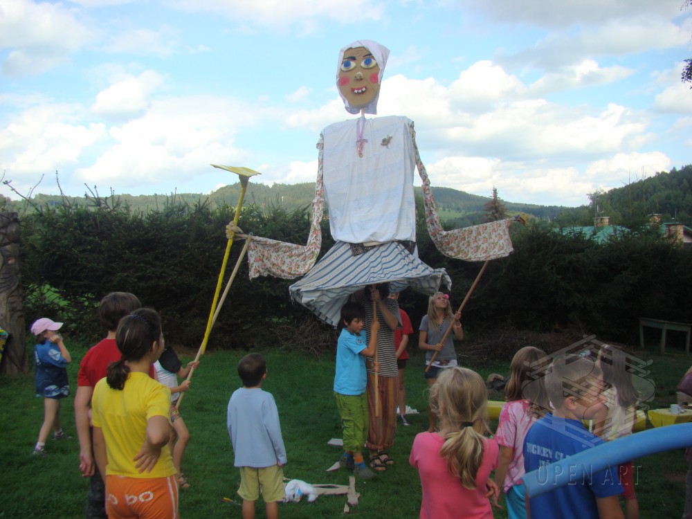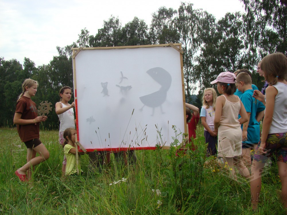 Dílna bude vycházet stejně jako loni ze „site specific art“. To znamená, že jako detektivové nejdříve vypátráme tajuplná a prazvláštní místa (to jsou ony „sites specific“), na kterých ukrývají se příběhy. Ty pak pomocí magie, ke které patří loutky, světla, tanec, barvy, zpěv, křik, šepot či třeba mech na hlavě, společně vyvoláme a oživíme. (to je ono „art“) A protože se kouzlení daří ponejvíce ve tmě, zakončíme naši dílnu o poslední táborové noci zahráním našich objevených příběhů rodičům a kamarádům. Už jste někdy viděli tančit pařez? Těšte se!