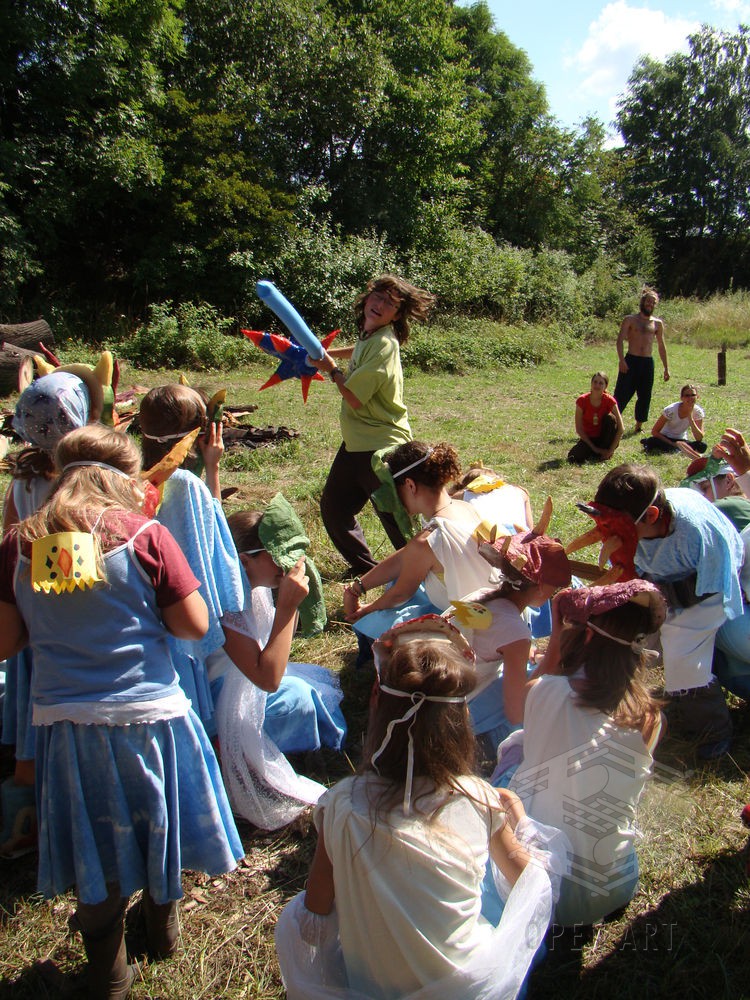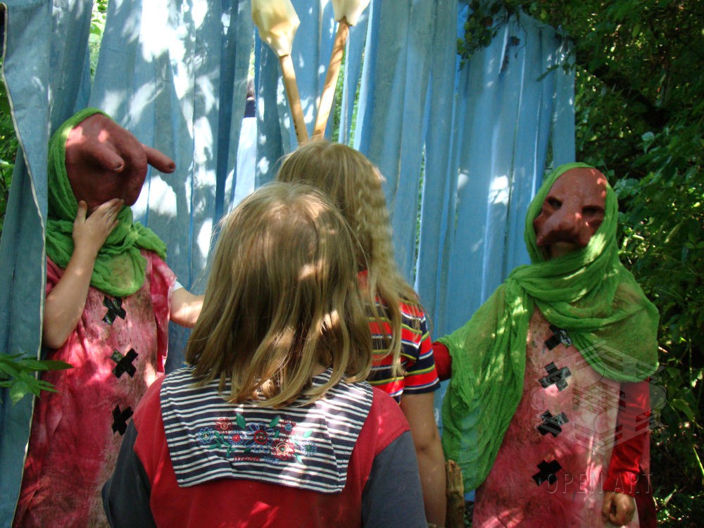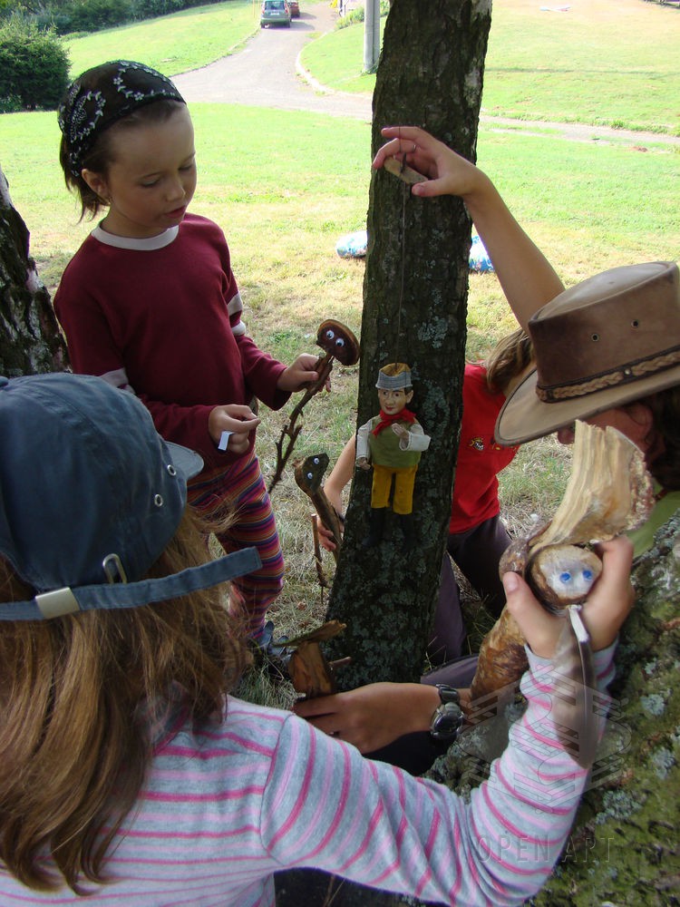 Dramatizace vybraného příběhu, v podobě průvodu krajinou. Oživování okolních míst, výroba loutek a masek z nalezených přírodnin i nepřírodnin. A třebas i příprava hudebního doprovodu. Seznámení s různými výtvarnými technikami a divadelními postupy.