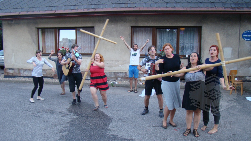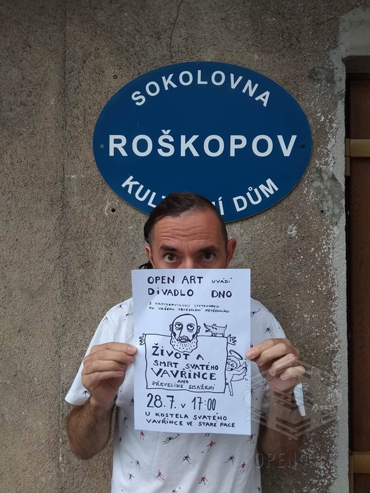 Stejně jako v loňském roce, kdy jsme s Jiřím Jelínkem spolupracovali na site-specific představení Hospoda, jsme i tentokrát pozvali umělce z Prahy ( …a Brna …a Mostu … a Kladna ), aby vytvořili představení inspirované místním geniem loci. V průběhu posledního červencového týdne tak v roškopovské sokolovně vznikalo představení „Život a smrt sv. Vavřince aneb Převeliké rožnění“; jak již název napovídá, inspirací byl především život a nemilá smrt sv. Vavřince, ale také záznamy z místních kronik o působení několika ochotnických divadelních spolků.