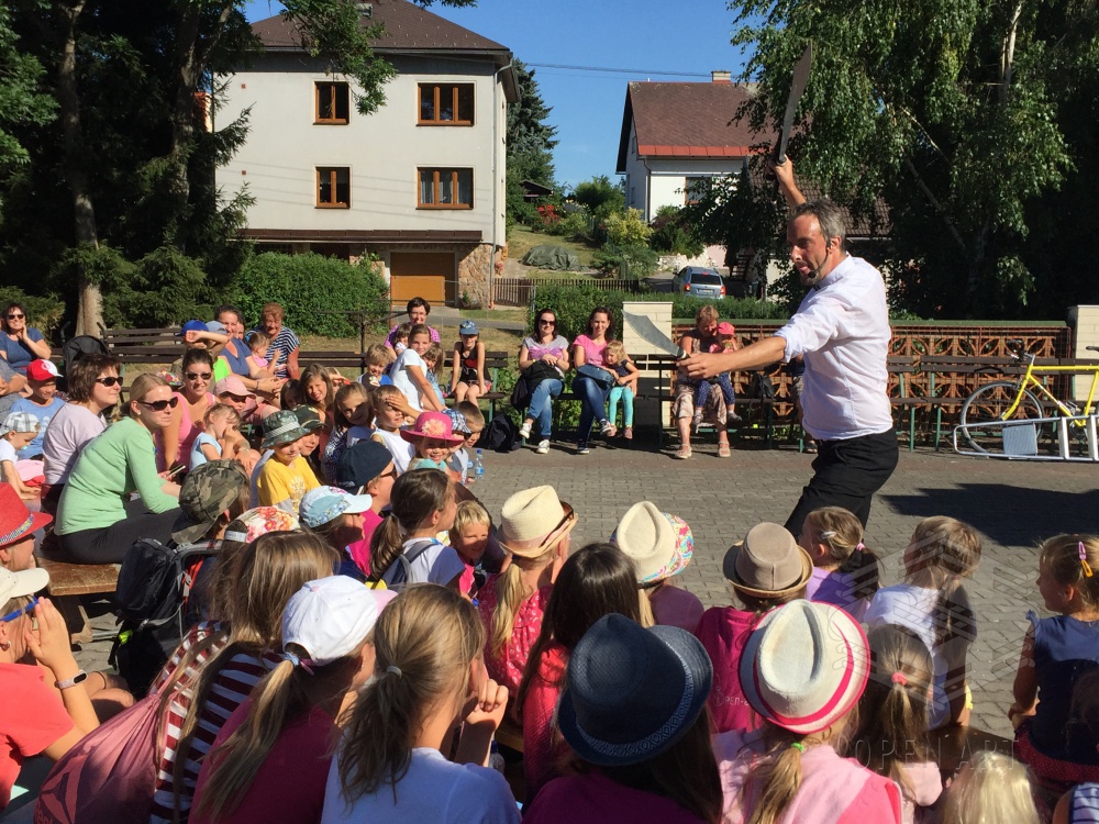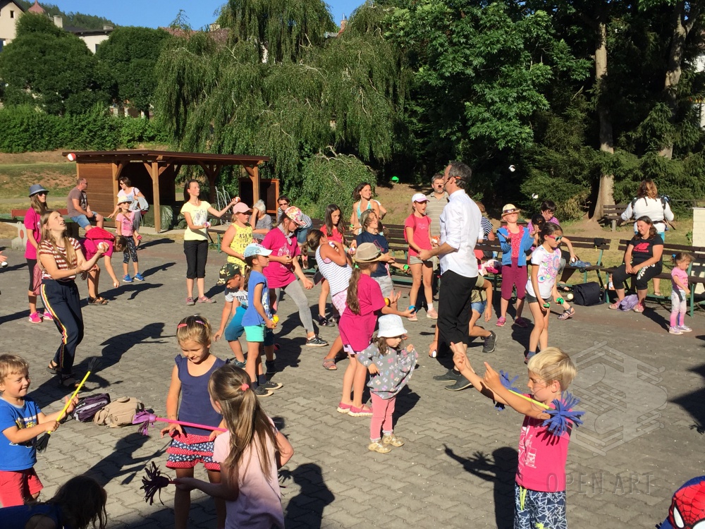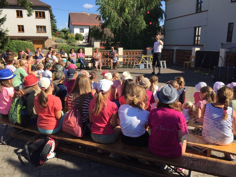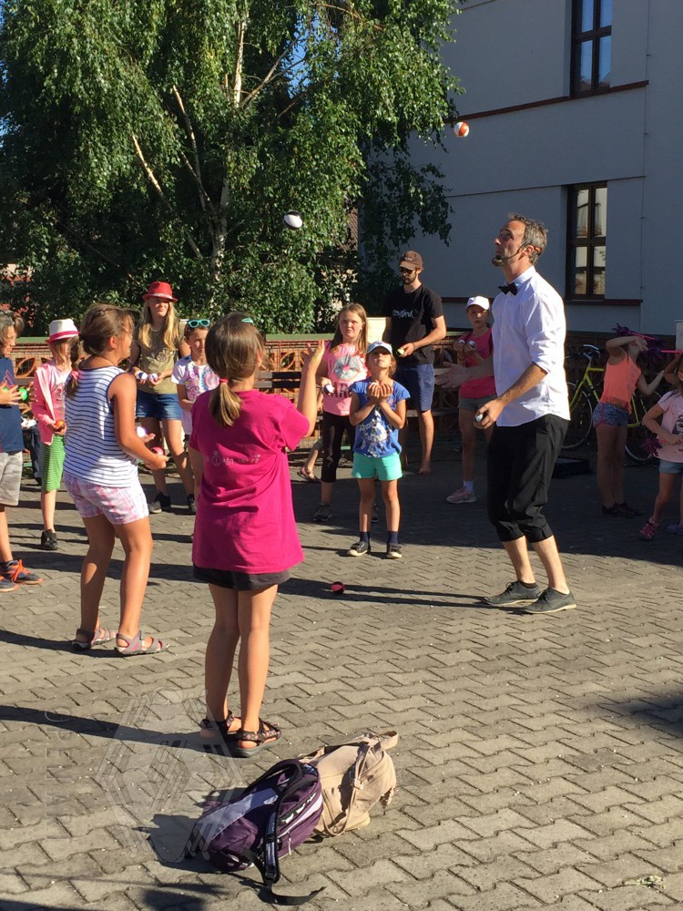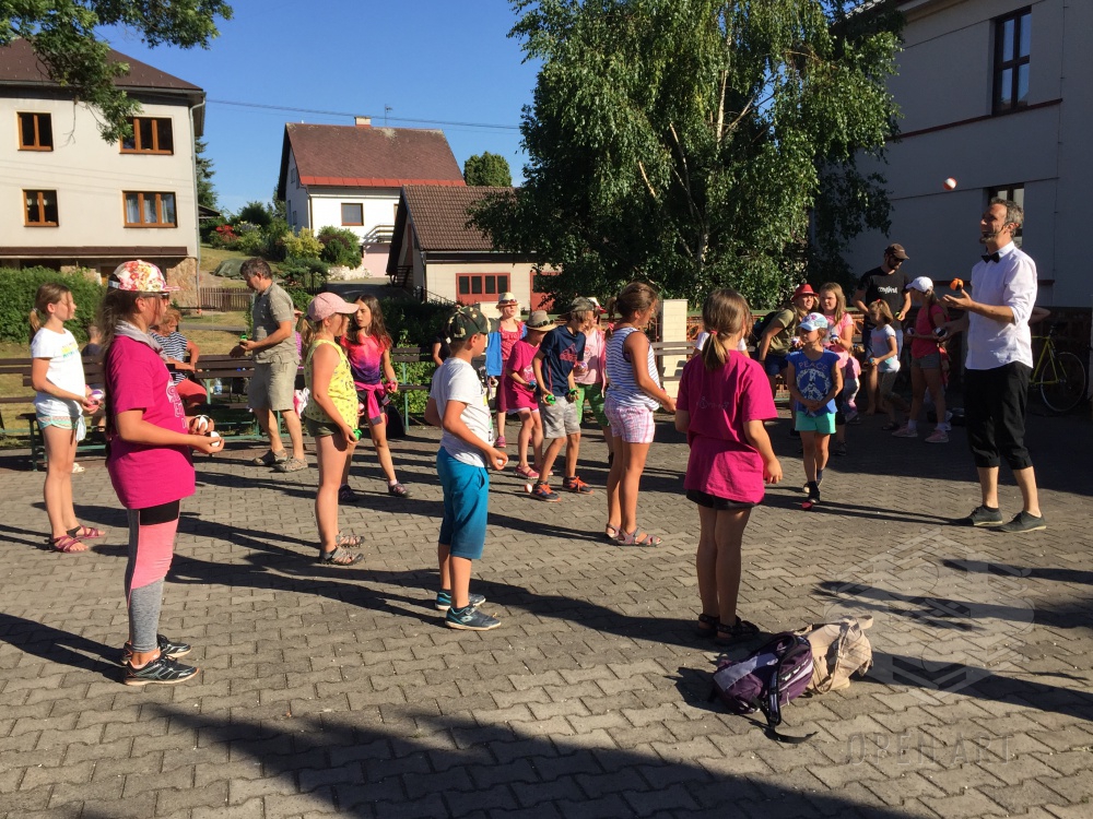Ve středu 3.7. navštívili naši táborníci žonglérské představení Cirkusu LEVITARE, které se uskutečnilo ve Staré Pace v rámci 5. ročníku Staropackého divadelního července. Své umění a průřez moderním žonglováním nám předvedl jeho principál Jan Hlavsa. Kromě žonglování s noži a pochodněmi jsme viděli i balancování předmětů šokujících velikostí na performerově obličeji… A po vystoupení následovala malá dílna pro začínající žongléry – nechme se překvapit, zda nově nabyté dovednosti uplatní i v sobotním vystoupení ; )