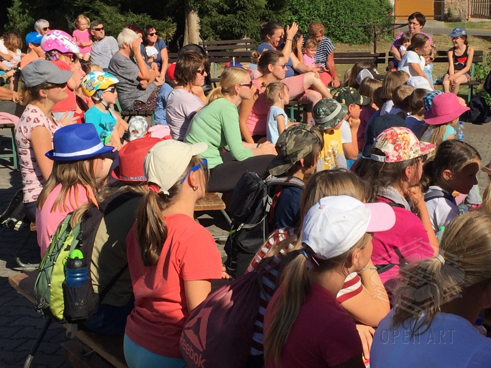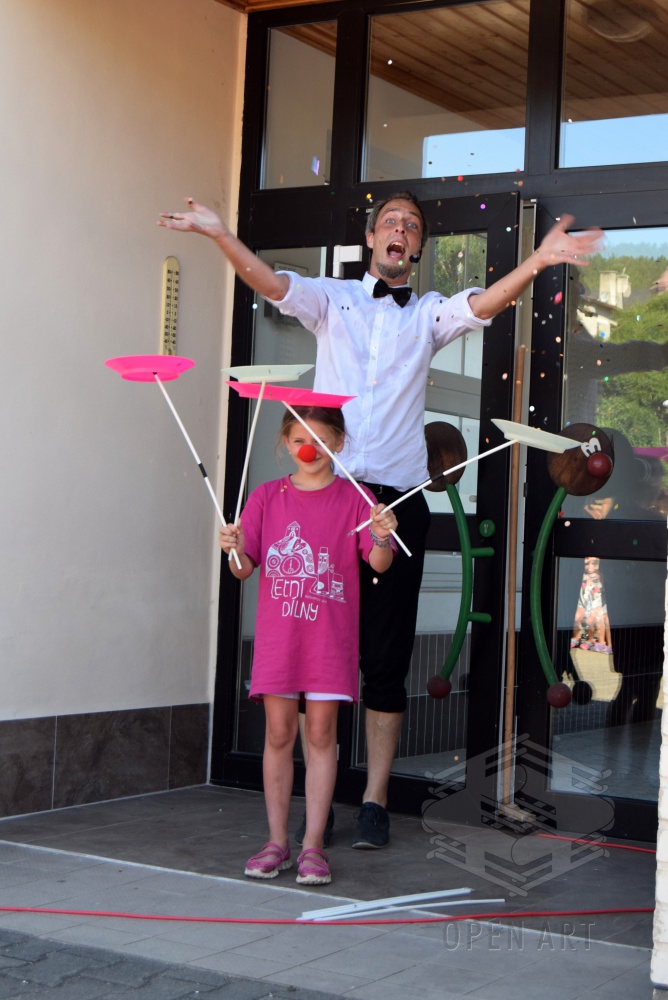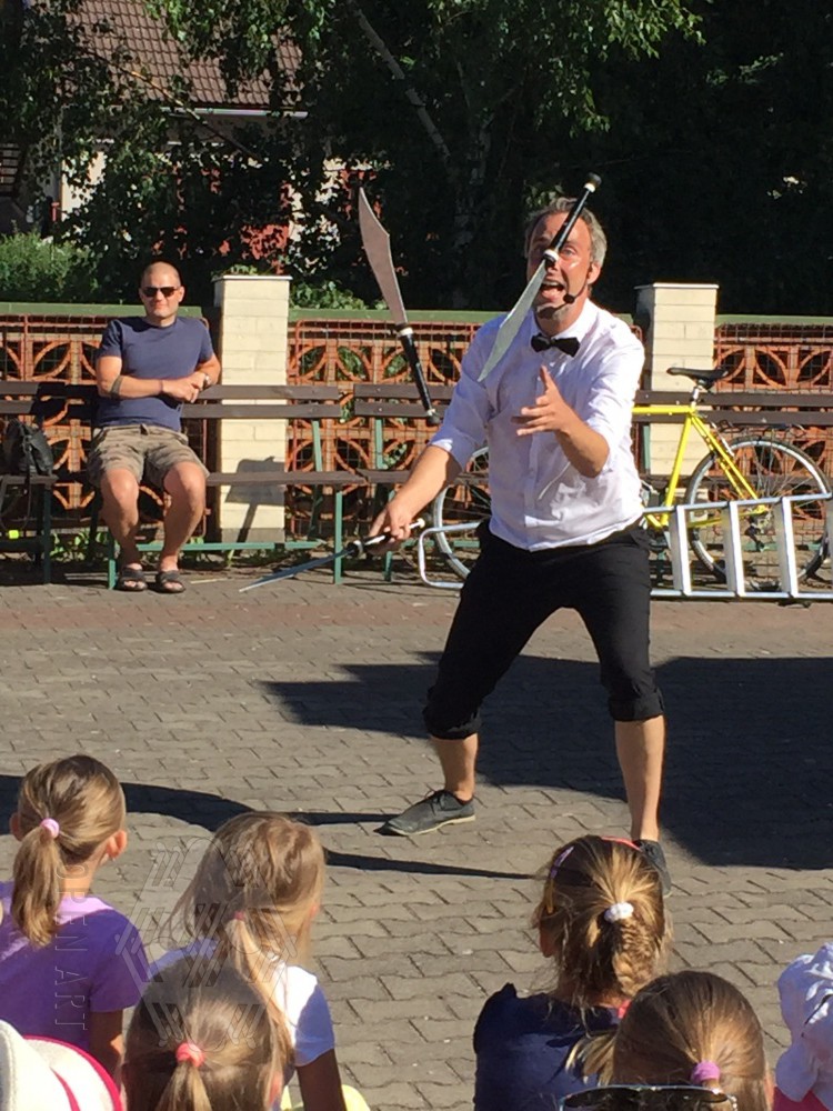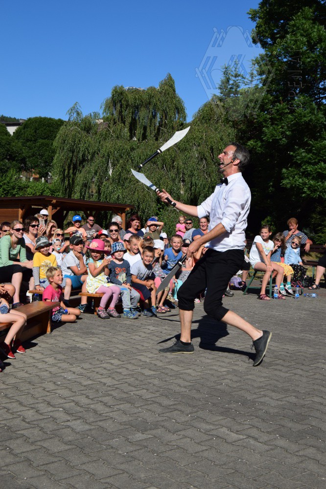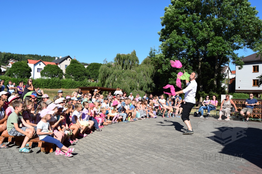 Ve středu 3.7. navštívili naši táborníci žonglérské představení Cirkusu LEVITARE, které se uskutečnilo ve Staré Pace v rámci 5. ročníku Staropackého divadelního července. Své umění a průřez moderním žonglováním nám předvedl jeho principál Jan Hlavsa. Kromě žonglování s noži a pochodněmi jsme viděli i balancování předmětů šokujících velikostí na performerově obličeji… A po vystoupení následovala malá dílna pro začínající žongléry – nechme se překvapit, zda nově nabyté dovednosti uplatní i v sobotním vystoupení ; )